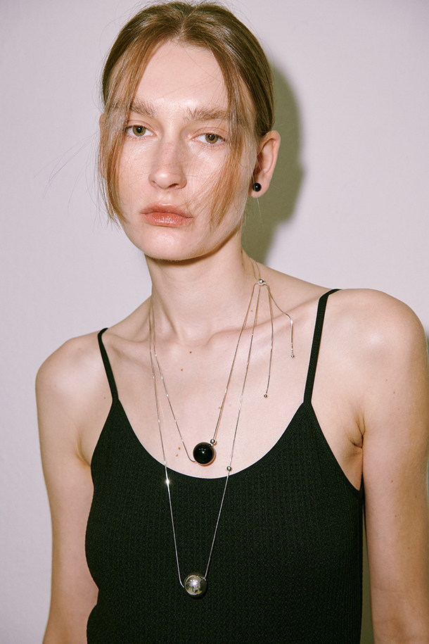 볼드한 볼이 포인트로 장식 된 ‘BALL POINT N’ 시리즈 SILVER / LARGE 네크리스 제품입니다.