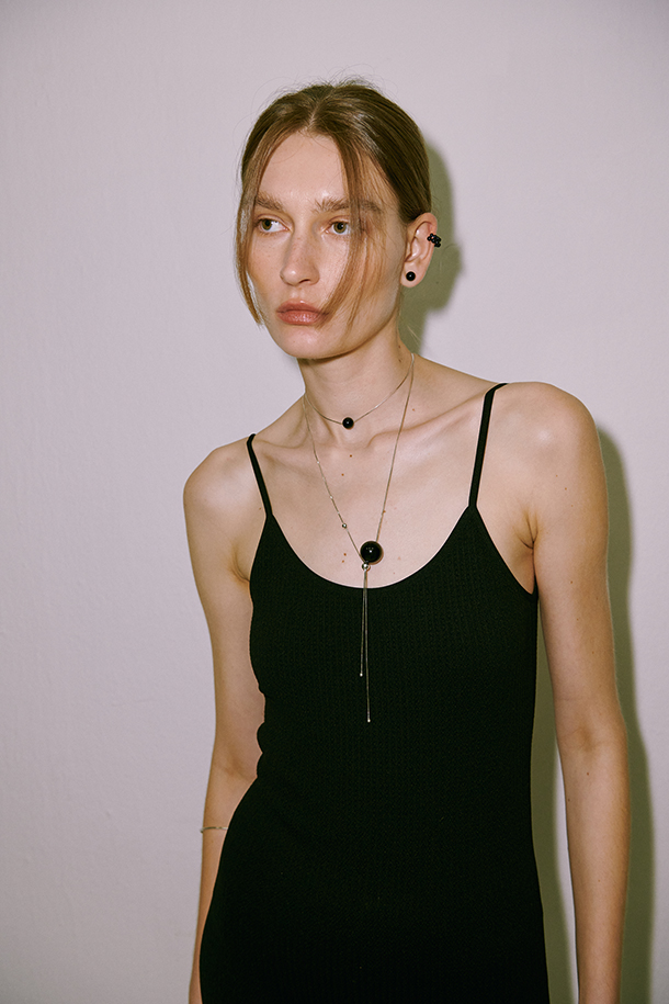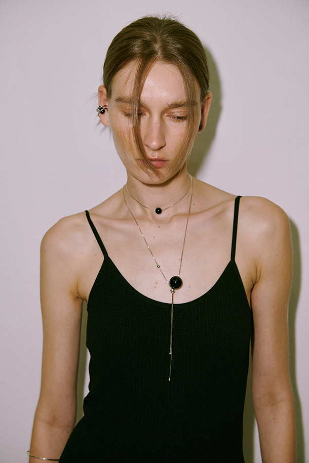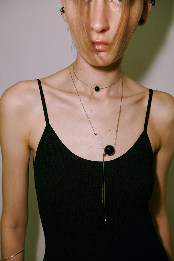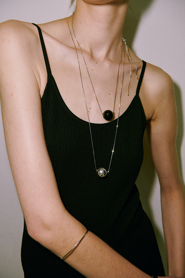 볼드한 볼이 포인트로 장식 된 ‘BALL POINT N’ 시리즈 ONYX / LARGE 네크리스 제품입니다.
