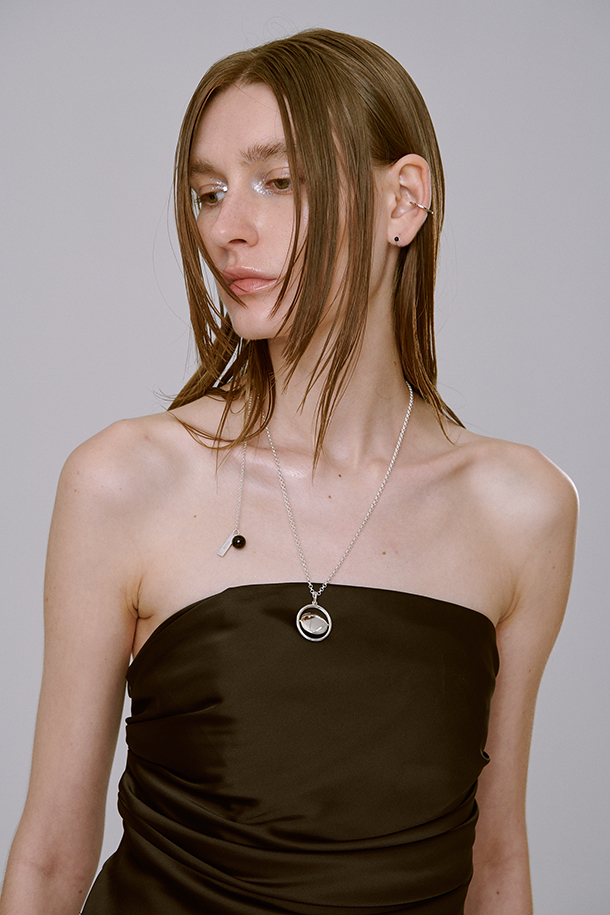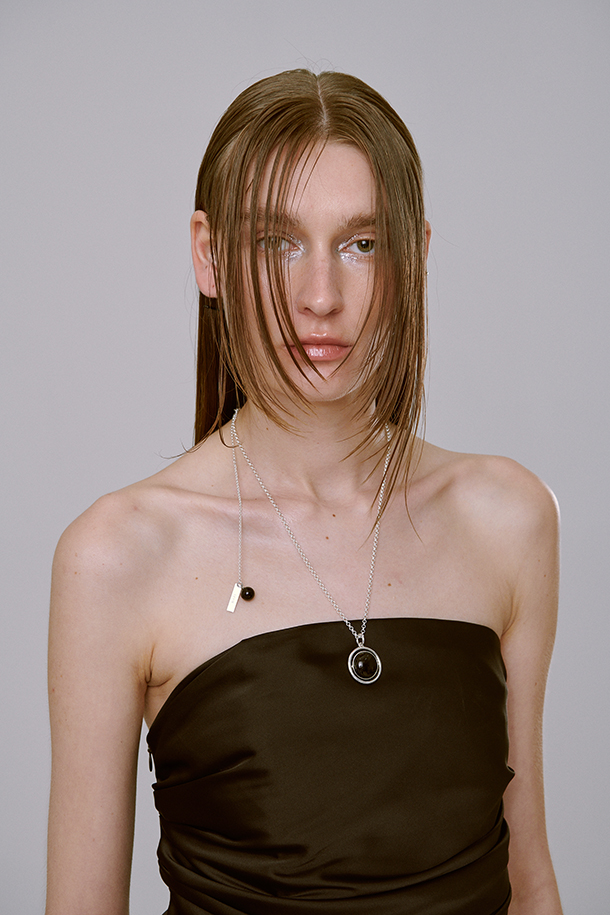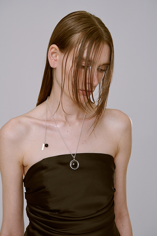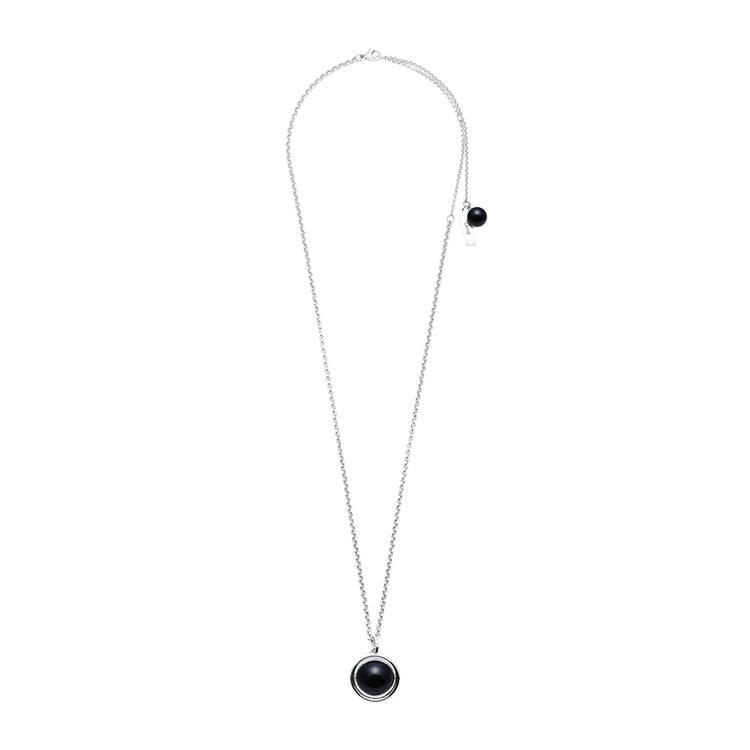 볼드한 사이즈의 오닉스와 매끈한 볼륨감의 라운드 펜던트가 돋보이는 360도 돌아가는 리볼빙 네크리스 제품입니다.