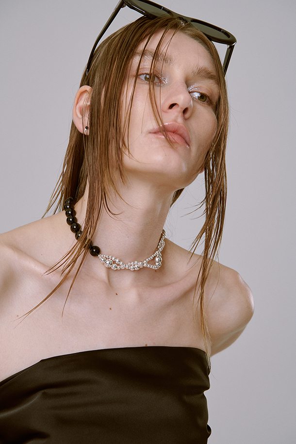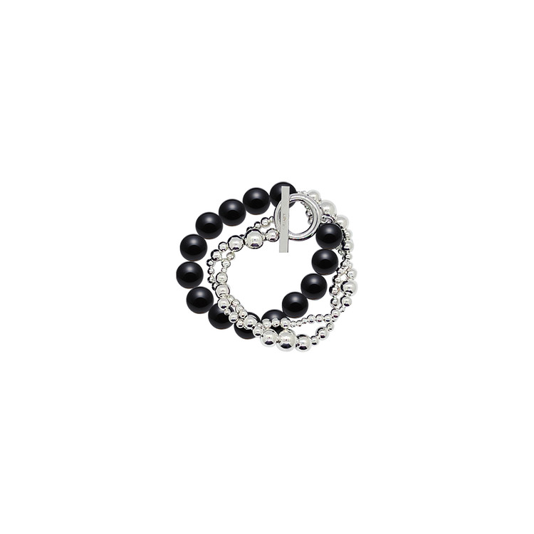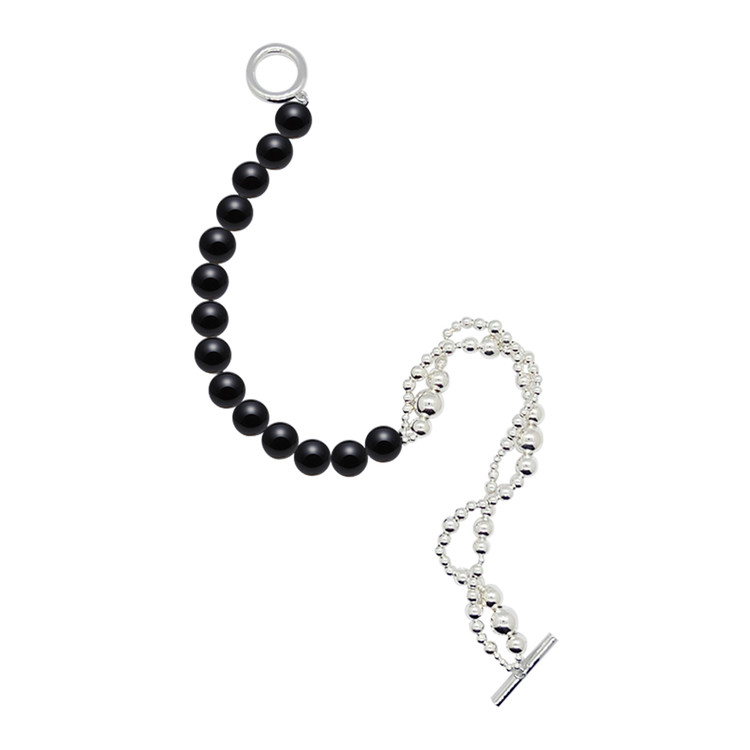 오닉스와 다른 볼륨의 실버 볼이 트위스트로 반반 엮인 오닉스& 트위스트 실버 볼 초커 제품입니다.